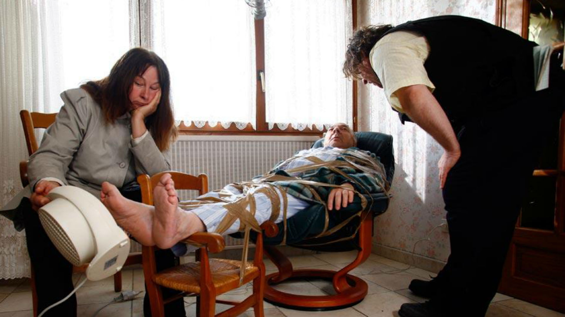 After a children’s clothes factory closes, leaving its female staff jobless, taciturn ex-con worker Louise (Yolande Moreau) suggests the workers spend their pooled money on a worthy cause – killing the boss that put them in this mess. She recruits a likely hitman: Michel (Eldorado actor-director Bouli Lanners), an inept security specialist who subcontracts the hit to a series of wildly inappropriate stand-in assassins.